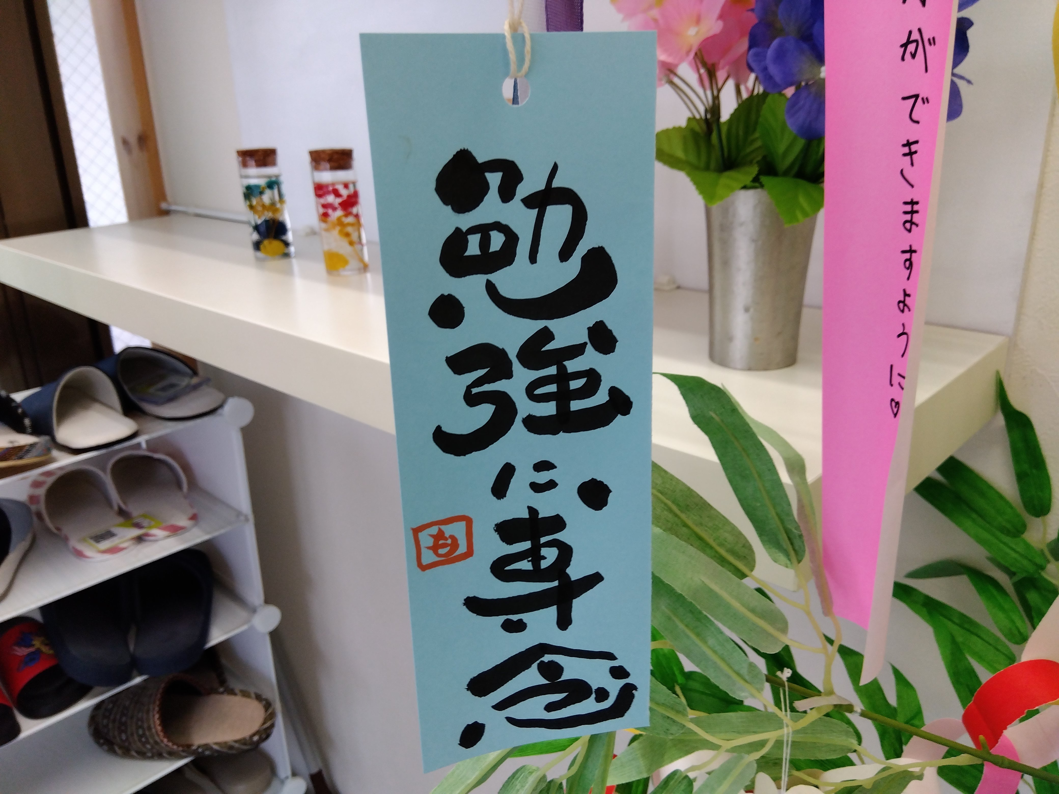 先日から塾の入口には七夕飾りが置かれています。 思い思いに塾生が短冊を吊り下げているのですが 保護者の方から「これを吊り下げてください」とご要望いただきました。 ![]() 味のあるフォント! こういうの大好きです。 ![]() こうやって保護者の方も一緒に参加してくれるなんて本当にうれしいですね。 「万全の体調で臨めますように」 最近、梅雨やクーラーのせいで体調を壊す人が多いです。 高校生は進研模試、中3は総合模試。 大事なテストが続いているので体調管理に気を付けましょう。 少しずつ中3が自習に来るようになってきました。 夏期講習まであと2週。 準備もしっかりしたいですね。 |